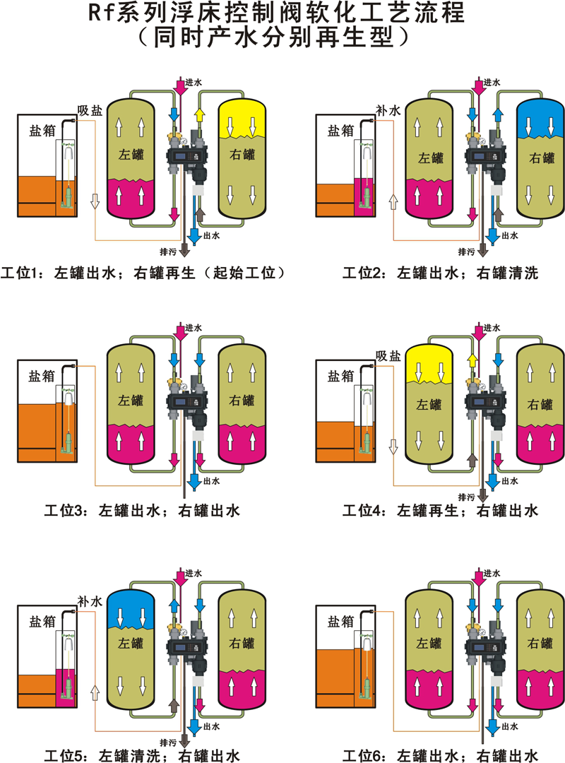 全自動鈉離子交換器,依托專利產品多功能平面閥和現代先進的自動化微電腦技術,用轉動對位方式實現液相的切換、控制原水、軟化水、鹽液和廢水在系統內的流量和流向,自動完成交換器周期循環軟化過程的全自動。