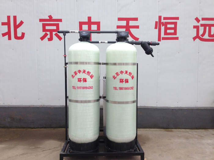 軟水器由兩個樹脂罐(主罐和副罐)水力控制閥、鹽箱三部分組成,控制閥控制水路在主罐和副罐之間切換,確�?傆幸粋罐處于工作狀態,而另一個罐處于再生或備用狀態,再生鹽液靠閥內裝設的文丘里噴射器負壓吸入,再生及清洗用水是另一個罐的軟化出水。對于不同的原水硬度配用不同號碼的水表盤以達到對應的工作和再生周期。